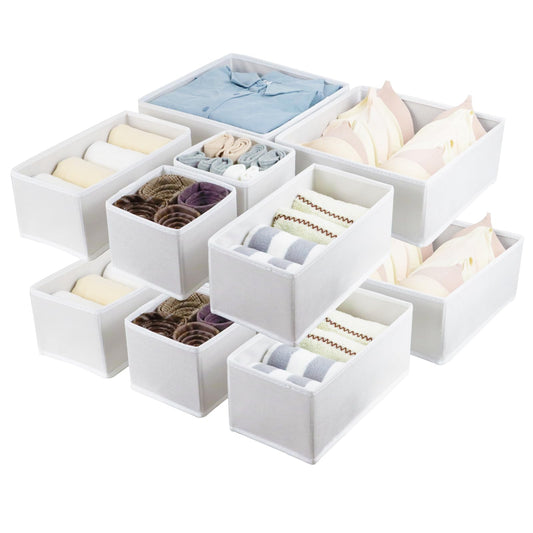 12 Pack Drawer Organizers for Clothing, Foldable Clothes Drawer Organizer for Underwear, Folded Clothes, Baby Clothing, Socks, Bra, Towels, Ties - Multi-pack Storage Box (White)