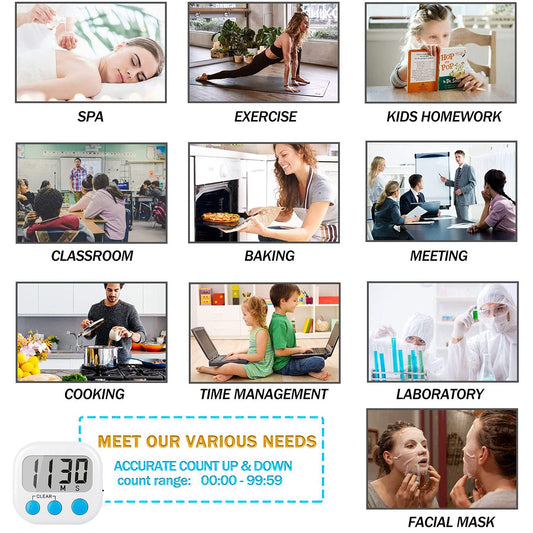 12 Pack Digital Kitchen Timers for Cooking Magnetic Timer for Cooking Loud Alarm White