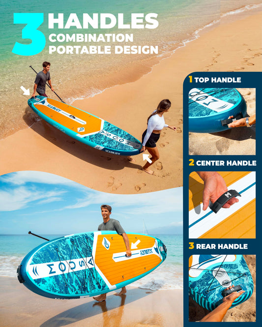 MOUSA 10‘8/11'×35" Extra Wide Inflatable Stand Up Paddle Board, Stable Paddleboard SUP for 2 People/Family, Anti-Slip Full EVA Deck, 3 Handles, 100L Backpack, All-Round Sup Board, Big Fin