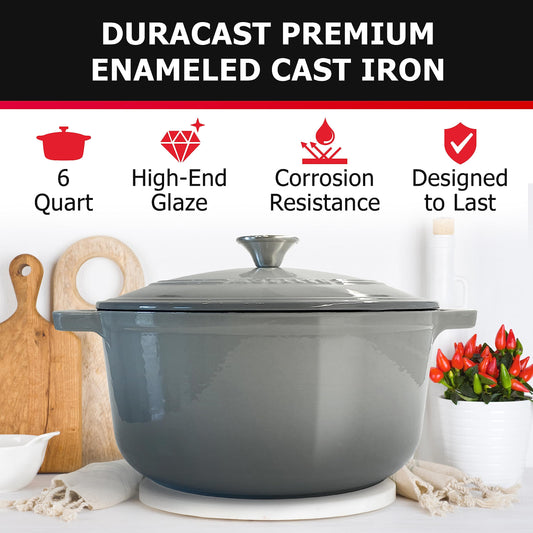 Mueller 6 Quart Enameled Cast Iron Dutch Oven, Heavy-Duty Casserole and Braiser Pan with Lid and Knob, Safe for All Cooktops