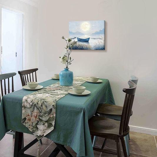 amatop Coastal Bathroom Wall Art Blue Beach Nautical Ocean Nature Canvas Picture with Boat Moon Lake Mountain Sea Relaxing Serene Landscape Gallery Wrapped Artwork for Modern Home Bedroom Decor 16x12