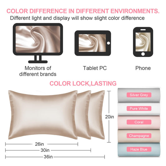 Mulberry Silk Pillow Cases Standard Size with Hidden Zipper, Ultra Smooth and Soft Breathable Cooling Silk Satin Pillowcase for Hair and Skin, Gifts for Women Men (Champagne, 20x26 Inches, 1 Pack)