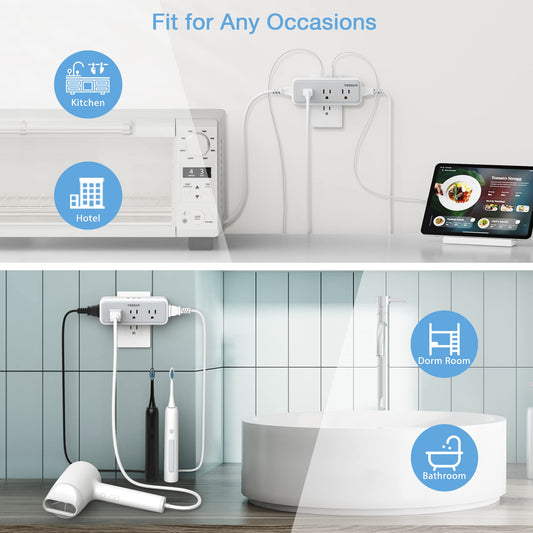 Multi Plug Outlet Extender, USB C Wall Charger, TESSAN Wall Plug Splitter with 5 Outlets and 3 USB, Electrical Power Expander with Surge Protector Spaced for Home Office Dorm Room