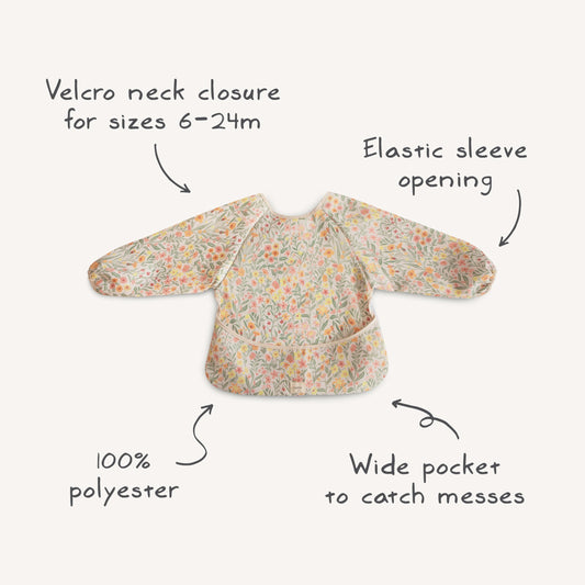 mushie Long Sleeve Baby Bib | Water Resistant Adjustable Fit for Ages 6-24 Months (Pastel Blooms)