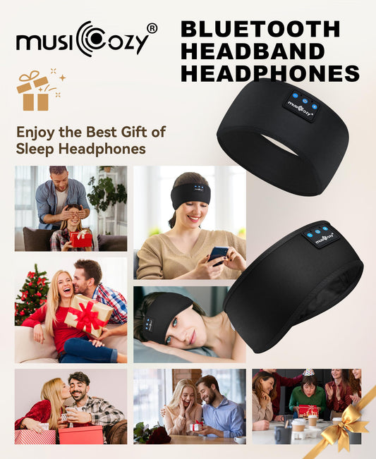 MUSICOZY Sleep Headphones Bluetooth 5.4 Headband, Wireless Earphones Music Sleep Earbuds Sleeping Eye Mask with HD Stereo Speakers for Workout Running Travel Yoga, Ideal Gifts for Women Men
