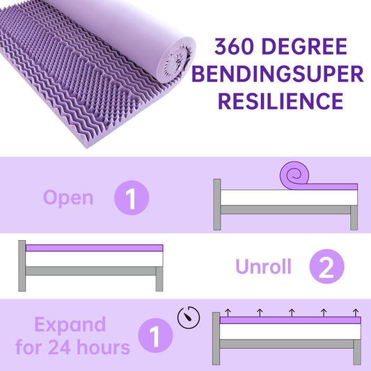 MUXHOMO 3 Inch Full Size Mattress Topper, 7-Zone Cooling Gel Infused Mattress Topper, Egg Crate Foam Bed Pad, CertiPUR-US and Oeko-TEX Certification (54"×75", Lavender)
