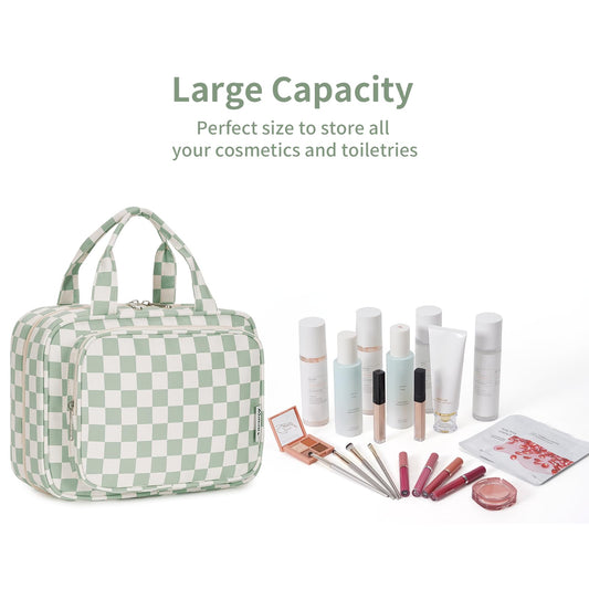 Narwey Travel Toiletry Bag for Women Large Hanging Makeup Bag Organizer Toiletries Bag for Full Size Essentials Accessories Cosmetics (Mint Green Checkerboard (Large))