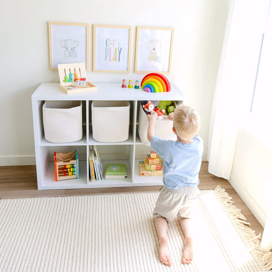 NaturalCozy Storage Cubes 11 Inch Cotton Rope Woven Baskets for Organizing, 3-Pack | Cube Storage Bin | Square Storage Baskets for Shelves Organizer, Classroom, Kids Toy Bins, Closet, Baby Nursery