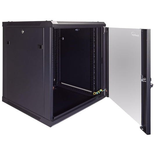 NavePoint 12U Server Rack Enclosure with Glass Door, Cooling Fan, Locks, & Removable Side Panels - 12U Wall Mount Network Cabinet 19 Inch Rack 17.7" Deep (450mm)