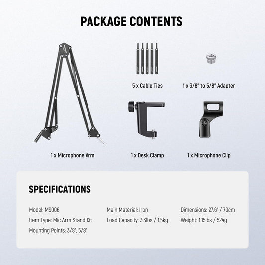NEEWER Microphone Arm Stand, Suspension Scissor Boom Mic Arm Desk Mount with Clip & 3/8" to 5/8" Adapter Compatible with Blue Yeti Snowball HyperX QuadCast SoloCast Shure, Max Load 3.3 lbs, MS006
