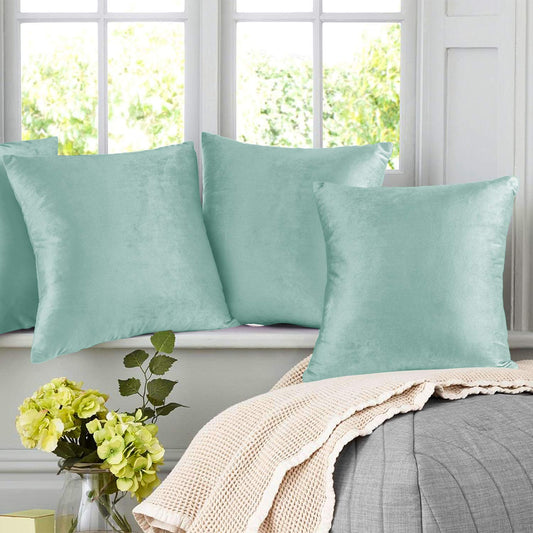 Nestl Throw Pillow Covers, Cozy Velvet Decorative Light Blue Pillow Covers 18 x 18 Inches, Soft Solid Couch Pillow Covers for Sofa, Bed and Car, Set of 2