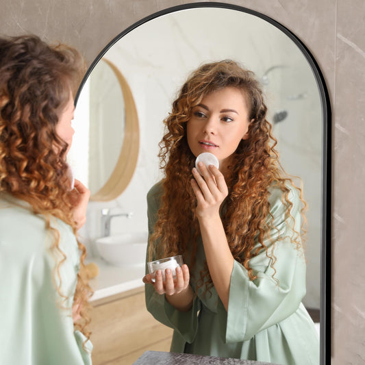 NicBex Arched Full Length Mirror with Stand, 56"x19" Aluminum Alloy Frame Floor Mirror, Black - Free Standing, Leaning Against Wall or Wall-Mounted, for Bedroom Living Room Dressing Room