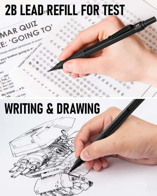 Nicpro 2mm Metal Mechanical Pencil Set, 2PCS Lead Holder 2.0 mm Marker Artist Carpenter Pencils with 120 Graphite Lead Refill (HB 2H 4H 2B 4B & Color), 2 Eraser for Drafting, Drawing Writing Sketching