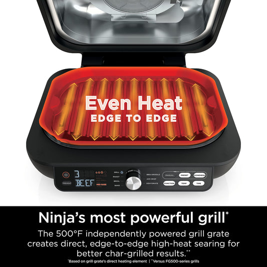 Ninja IG651 Foodi Smart XL Pro 7-in-1 Indoor Grill/Griddle Combo, use Opened or Closed, Air Fry, Dehydrate & More, Pro Power Grate, Flat Top, Crisper, Smart Thermometer, Black