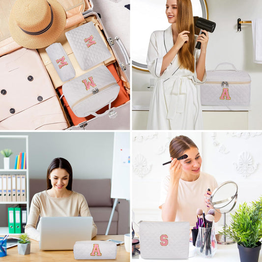 nitial Makeup Bag, Personalized Monogram Cosmetic Bag Set, Large Make up Bags | Travel Toiletry Bag | Makeup Bag for Girls Teen Girl Friend Sister Wife Girlfriend Gifts Daughter (Letter M)