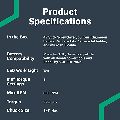 Amazon Basics by SKIL 4V Cordless Stick Screwdriver with 10-Piece Bit Set and USB Cable(Previously Denali brand)