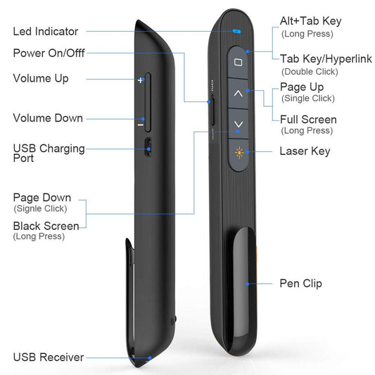 Norwii N76 Rechargeable Presentation clicker with Pointer, Long Range Presentation Remote, Wireless Presenter for PowerPoint Presentations, Slide Control (Black with Red Light)