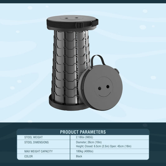 NUMANU Collapsible Stool 2-Pack - Upgraded Portable Folding Stool, Height Adjustable, Lightweight & Sturdy, Retractable Telescoping Camping Pop Up Seat Chair or Foldable Travel Footrest - Max 400lbs