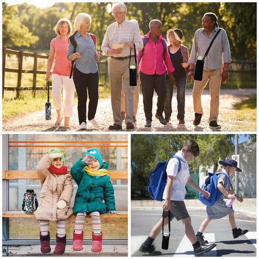 Nuovoware Water Bottle Carrier Bag, 25oz/32oz Bottle Pouch Holder, Adjustable Shoulder Hand Strap 2 Pocket Sling Neoprene Sleeve Sports Accessories for Hiking Travelling Camping, Black