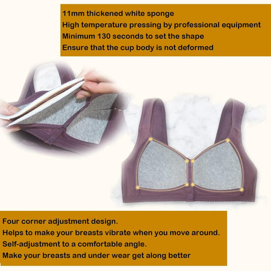 ObjFoch Daisy Bra, Front Snap Closure, Posture Correction, Wirefree, Cotton, S - 6XL, Stripe-Pink