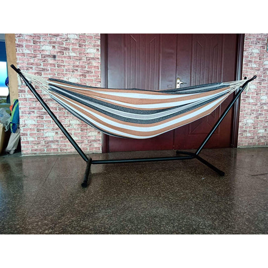 OceanTailer Brazilian Double Hammock Bed with Stand for 2 Person, Portable Steel Stand Hammock Bed for Indoor or Outdoor Use with Carrying Pouch in Desert Colors