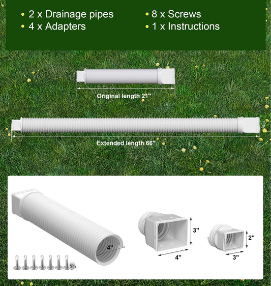 Ogutter Rain Gutter Downspout Extensions, Downspout Extender for Rainwater Drainage Flexible, Extendable 58"+66" Down Spout Drain Extension Pipes (2 Pack, White)