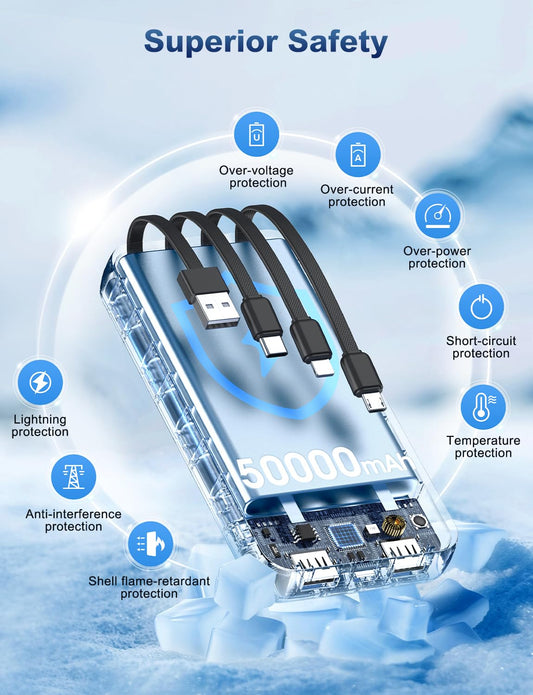 OHOVIV Portable Charger Power Bank 50000mAh Battery Pack, 22.5W Fast Charging PowerBank with Built in Cables,Travel Camping Essential USB-C Portable Phone Charger for iPhone Samsung Pixel Android iPad
