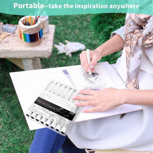 Ohuhu Fineliner Pens Micro Drawing Pens: 8-size Tips (Ultra-fine, Fine & Brush) Waterproof Pigment Black Ink for Illustration Drawing Journaling Sketching for Artist Beginners