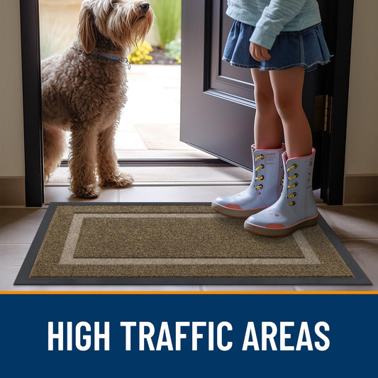 OLANLY Front Door Mat Indoor Outdoor Entrance, Waterproof All-Season, All-Weather Doormat, Sturdy Natural Rubber, Fade Resistant, Low Profile, Easy Clean Patio Porch Entryway Mat, 29.5x17, Brown