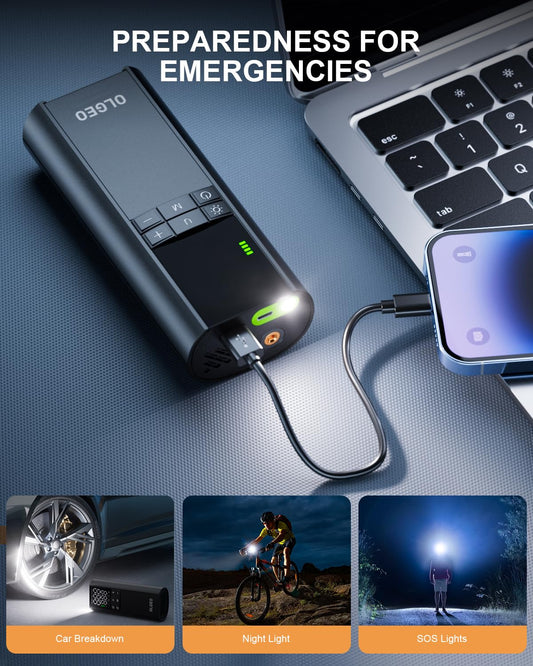 OLGEO Tire Inflator Portable Air Compressor, 170PSI Cordless Air Pump, 4X Faster Air Compressor with Pressure Detection, One Click Smart Tire Pump for Car, Motorcycle, Bicycle and Ball