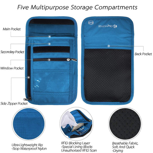 OMYSTYLE Neck Wallet, RFID Passport Holder for Travel, Adjustable Neck Strap, Waterproof Neck Pouch for Men & Women to Keep Cash, Credit Cards and Documents Safe, Blue (8x6)