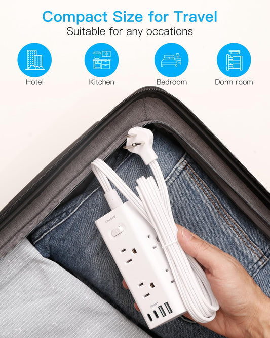 One Beat 10Ft Extension Cord with Multiple Outlets,Flat Plug Power Strip Surge Protector with 10 Ft Long Cord,6 Outlet 4 USB Ports (2USB C),Multi Outlet Wall Plug for Travel,College,Dorm Essentials