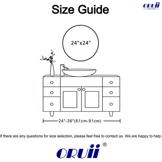 Oruii Round Mirror, Black Round Mirror 24 inch, Circle Wall Mirrors Metal Frame, Circular Mirrors for Wall, Living Room, Bathroom, Vanity, Entryway, Hallway.