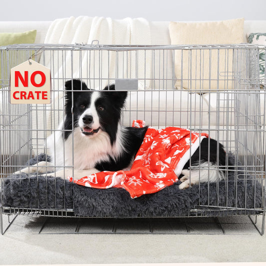 Orthopedic Dog Beds Medium/Large Sized Washable Removable Cover, Plush Dog Bed Waterproof Lining NonSkid Bottom, Crate Foam Pillow Mattress Fluffy Anti Anxiety Pet Pad 35x23 Inch, Dark Grey