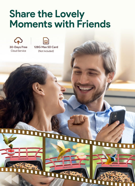 Osoeri Bird Feeder with Camera, Smart AI Identify Wild Bird Feeders Camera, 1080P Auto Capture Bird's Video & Motion Detection, with DIY Add-ons & Hummingbird Feeder, Gifts for Bird Lover (Red Black)