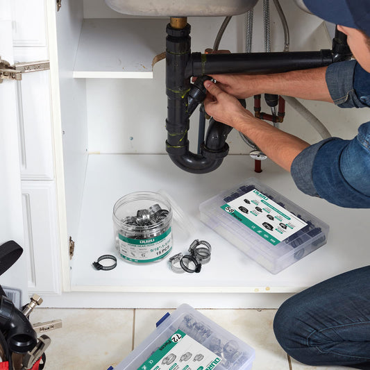 OURU 175PCS Hose Clamps Stainless Steel Assortment Adjustable 1/4"-2"(6-51mm) Worm Gear Hose Clamp, Heavy Duty Metal Small Hose Clamps for Automotive, Pipe, Radiator Plumbing, Fuel Line