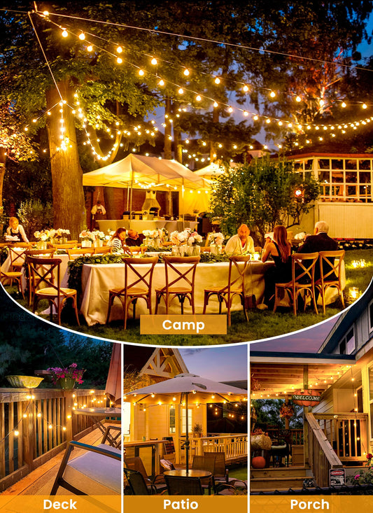 Outdoor String Lights 25 Feet G40 LED Patio Lights, Plug-in, 13 Plastic Edison Bulbs(1 Spare), Waterproof Connectable Hanging Light for Backyard Porch Balcony Party Decor, E12 Base, Black