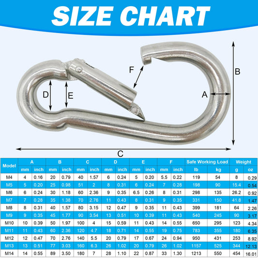 Outmate 304 Stainless Steel Carabiners -2.36 inch Heavy Duty, Durable & Rust-Free Clips for Gym, Swing, Dog Leashes, Hammocks, Keychains, and More(304,M6,Pack of 6)