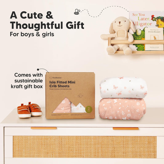 Pack and Play Sheets Fitted - 2-Pack Mini Crib Sheets for Pack N Play Mattress 38x26, Soft & Cozy, Neutral Toddler Playard Bedding, Snug Fitted Mini Baby Crib Mattress Cover Boy, Girl (Butterflies)