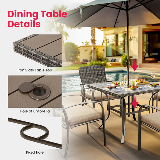Pamapic Outdoor 5-Piece Patio Dining Set, Weather Resistant PE Rattan Table and Chairs, Comfortable Cushions, Easy Maintenance, 5 PCS, Beige