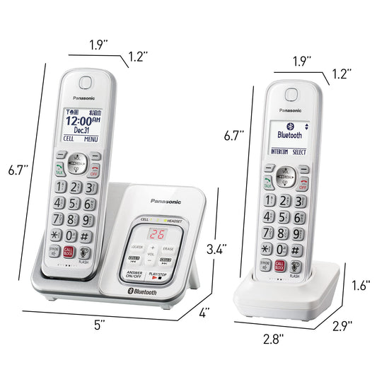 Panasonic Cordless Phone with Answering Machine, Link2Cell Bluetooth, Voice Assistant and Advanced Call Blocking, Expandable System with 4 Handsets - KX-TGD864W (White)