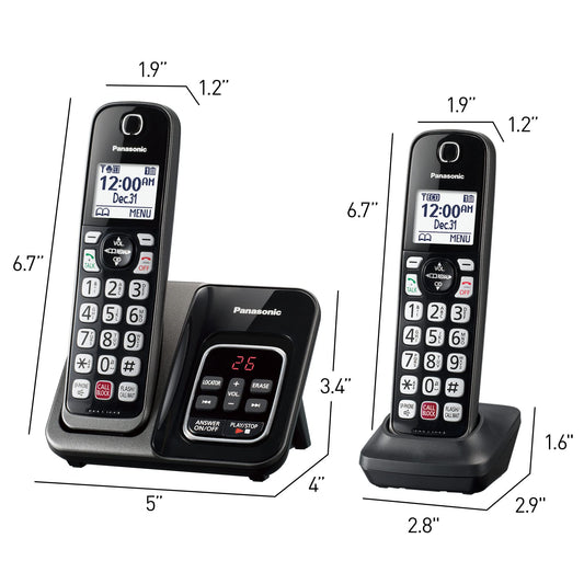 Panasonic Cordless Phone with Answering Machine, Advanced Call Block, Bilingual Caller ID and Easy to Read High-Contrast Display, Expandable System with 2 Handsets - KX-TGD832M (Metallic Black)