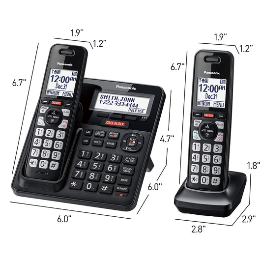 Panasonic Cordless Phone, Easy to Use with Large Display and Big Buttons, Flashing Favorites Key, Built in Flashlight, Call Block, Volume Boost, Talking Caller ID, 2 Cordless Handsets - KX-TGU433B