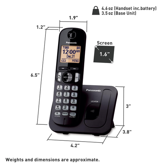Panasonic Cordless Phone, 1.6" Backlit Display, Call Block, Speakerphone, 10 Hours Talk Time, 1 Handset - KX-TGC200B (Black)