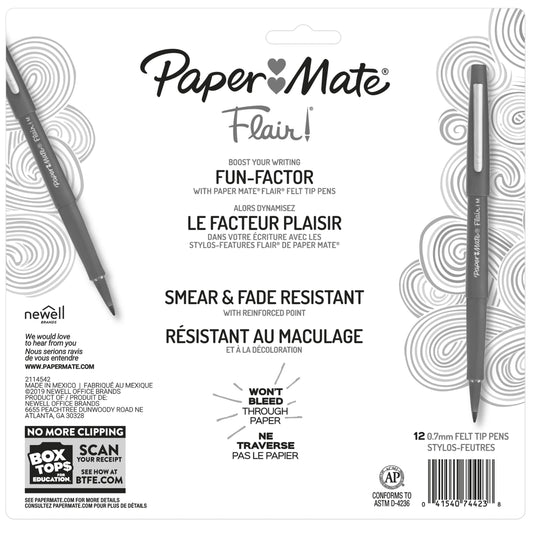 Paper Mate Flair Felt Tip Pens, Medium Point 0.7 Millimeter Marker Pens, School Supplies for Teachers & Students, Assorted Colors 12 Count
