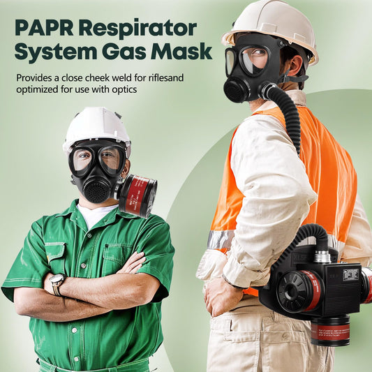 PAPR Respirator System Powered Air Purifying Respirator Kit for Gas Mask Supplied Air Respirator Blower with 3Pcs 40MM Filters for Tactical Spray Painting Vapors Chemicals Easy to Clean and Maintain