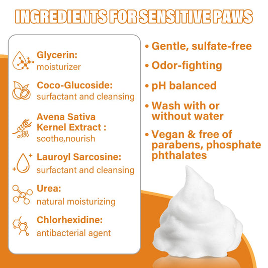 Paw Cleaner for Dogs & Cats, No-Rinse Foaming Pet Foot Washer with Built-in Scrubber Brush for Dirty, Muddy Paws – Suitable for Small, Medium & Large Dogs, Puppies, Kittens (5 fl oz)