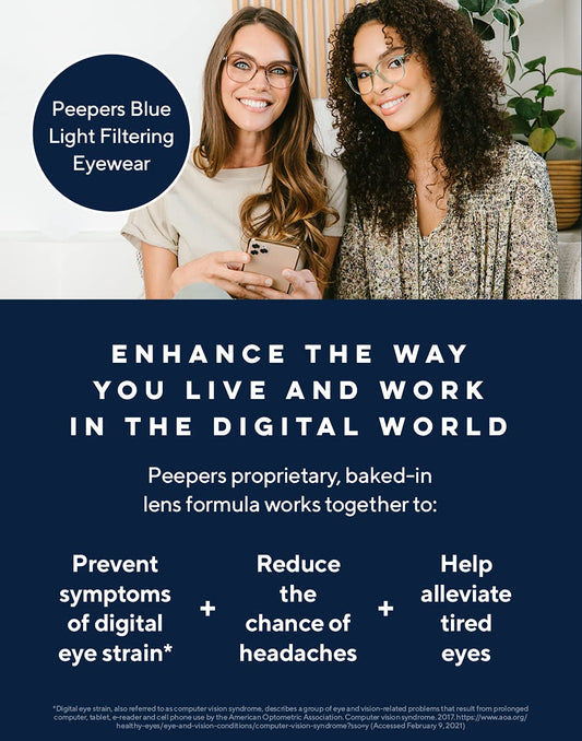 Peepers by PeeperSpecs unisex adult Dylan Focus Blue Light Filtering Reading Glasses, Honey Tortoise, 53 mm US