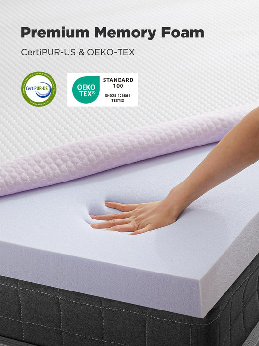 PERLECARE 3 Inch Queen Memory Foam Mattress Topper for Pressure Relief, Cooling Gel Infusion, CertiPUR-US Certified Purple, PCMTQ34PU-US