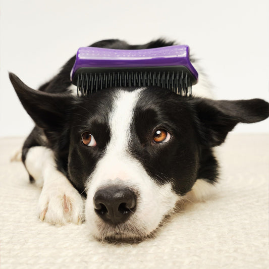 Pet Teezer De-Shedding Dog Brush by Tangle Teezer, Dog Grooming Tool for Long Haired Breeds and Wet or Dry Fur, Large, Purple & Gray